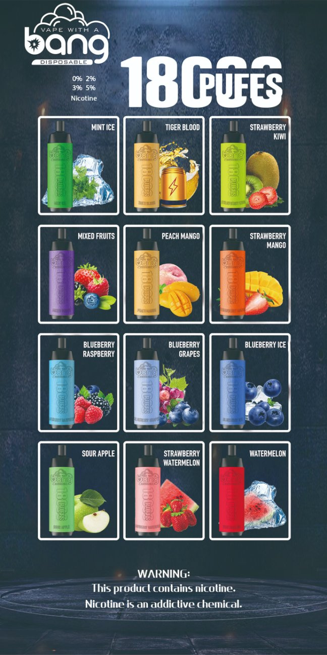 Bang 18000 Puff Disposable Vape – 24ml E-Liquid, 650mAh, Type-C Rechargeable, 16 Flavors