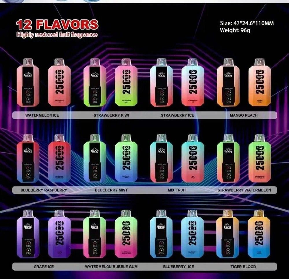 Bang 25000 Puff Double Mesh Coil Vape – Disposable, 30ml, Fruit Flavors, FDA Certified, Type-C Charging