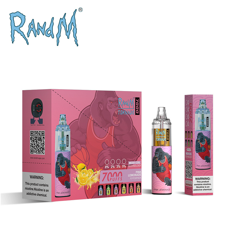 RandM Tornado 7000 Disposable Vape with 56 Fruit Flavors, 6000 Puffs, RGB Light & Logo Printing
