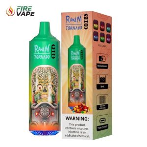 RandM Tornado 9000 Puffs Disposable Vape with 43 Flavors, 18ml E-Liquid & LED Lights, Type-C Rechargeable