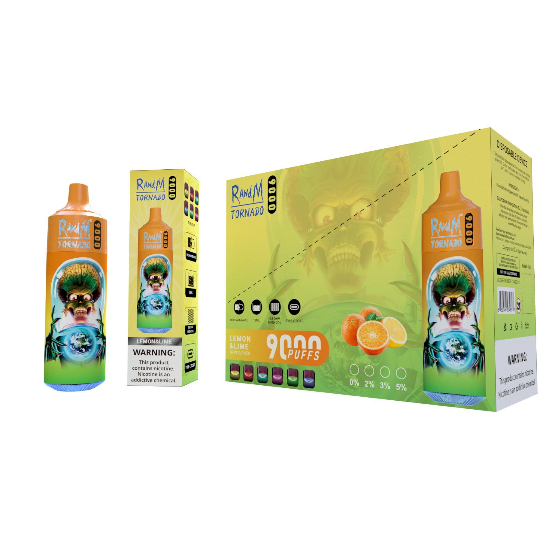 Randm Tornado 9000 Puffs Disposable Vape with 6 Lighting Colors, Adjustable Air & 53 Fruit Flavors – Wholesale