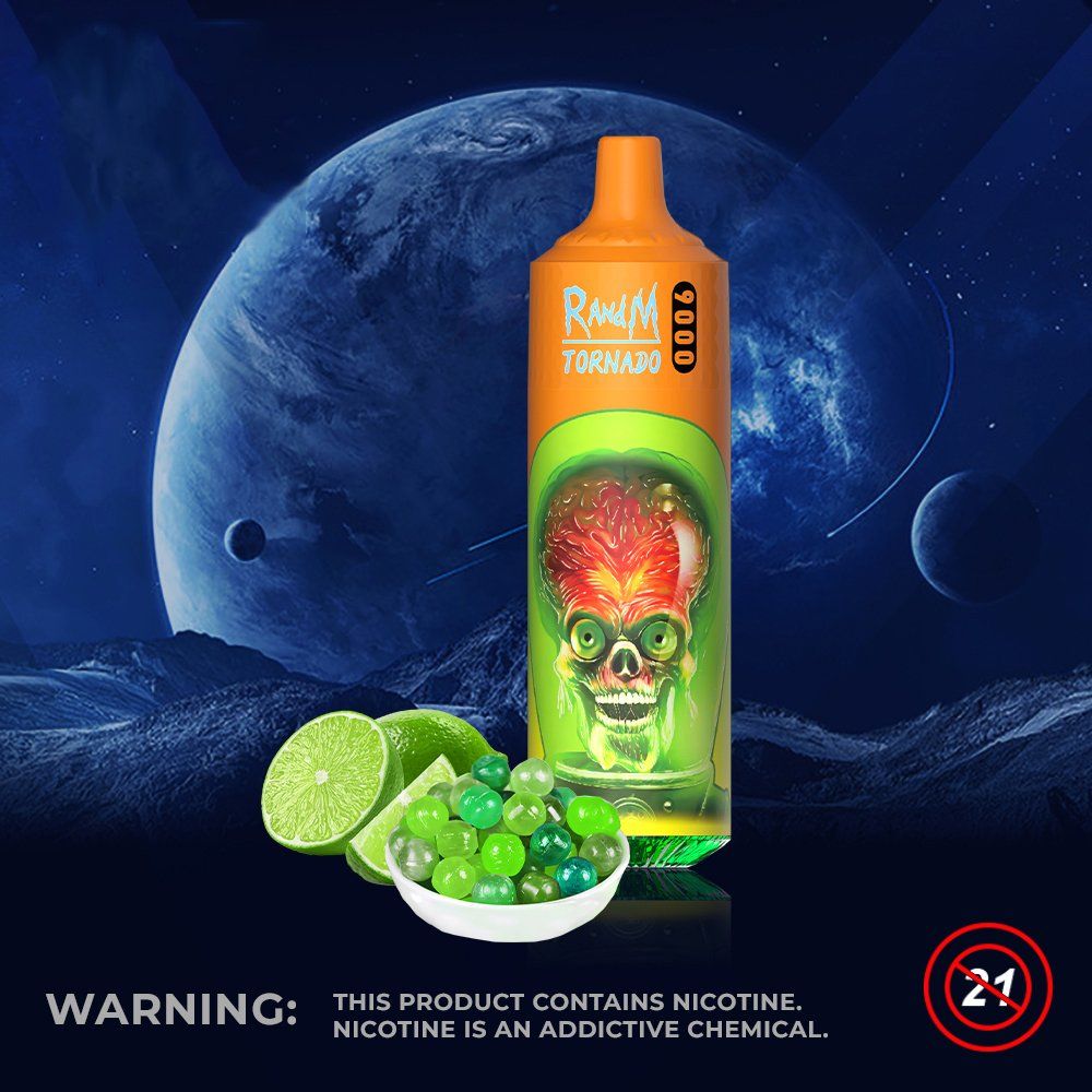 Randm Tornado 9000 Puffs Vape – 53 Flavors, 18ml E-Liquid, Type-C Rechargeable, LED Lights, Low Nicotine