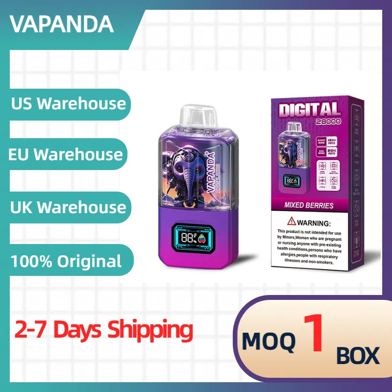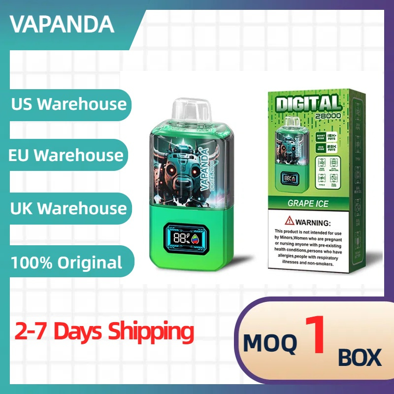 Vapanda Digital 28K Disposable Vaporizer – 12 Flavors, Mesh Coil, 29ml E-Liquid, 600mAh Battery